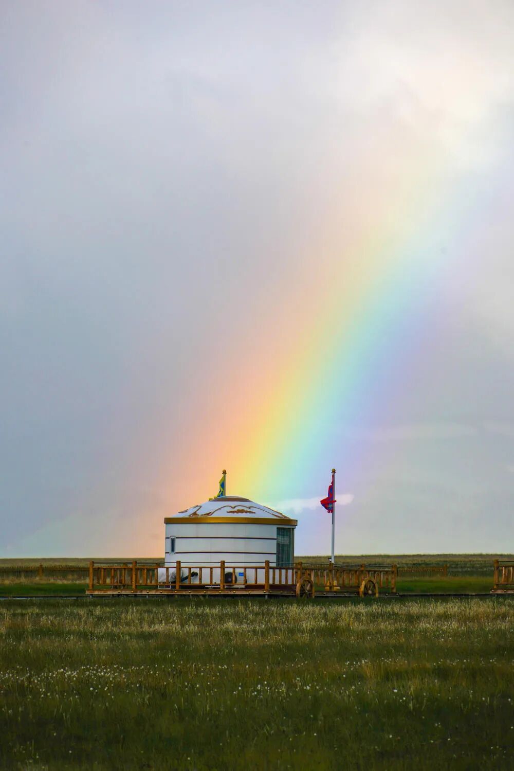 赛里木湖的天气多变到没有天气预报可以准确预测。这也代表了会有许多遗憾和惊喜。某日清晨看外面又是阴天,很是难过。结果走出房间一回头就看见了好大的彩虹
