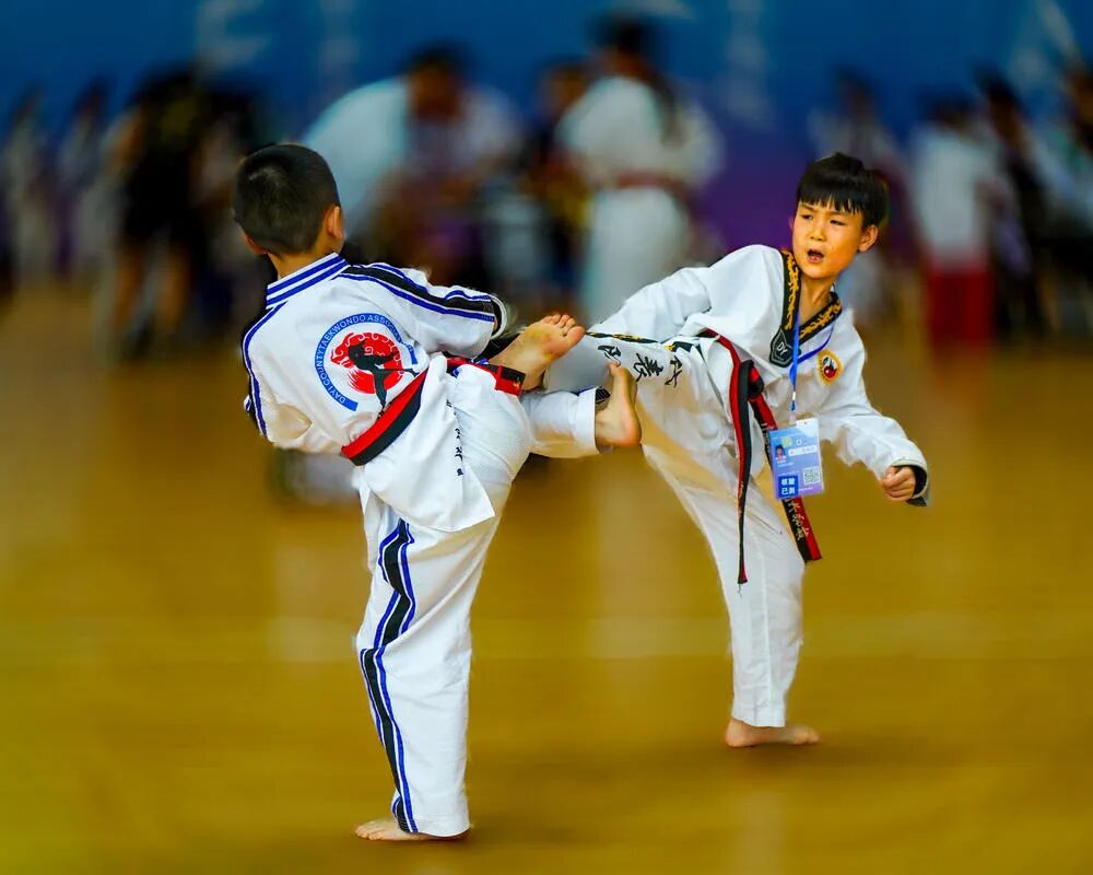 2022跆拳道比赛,还是隔着玻璃拍的!背景太杂,后期做了虚化!