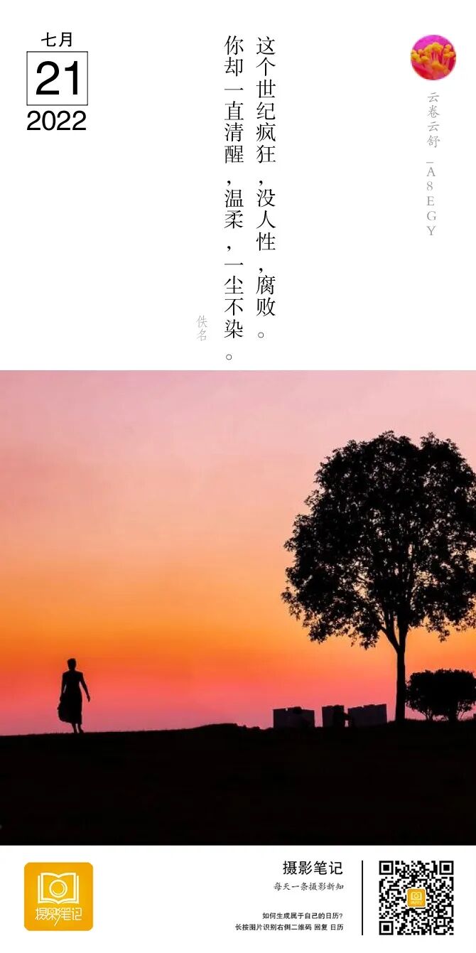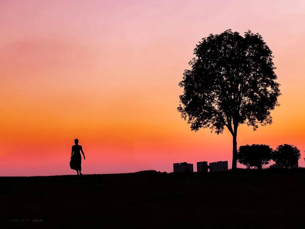 风姿物语。夕阳西下,晚霞不好,放弃湖面,选择拍这棵树。尽量压低机位,等待一个合适的人出现,拍成剪影。后期消除了一些杂物。