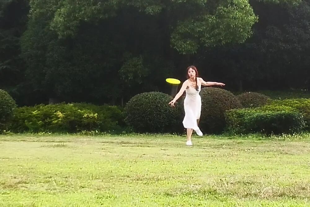 48/365,《掷飞盘的女孩》徬晚,草地上三五个好友在玩掷飞盘运动游戏,小姐姐动作优雅,抓拍,三张一组,后期二构,整体提亮mate10。图一请各位老师和同学多多指导支持!谢谢先!
