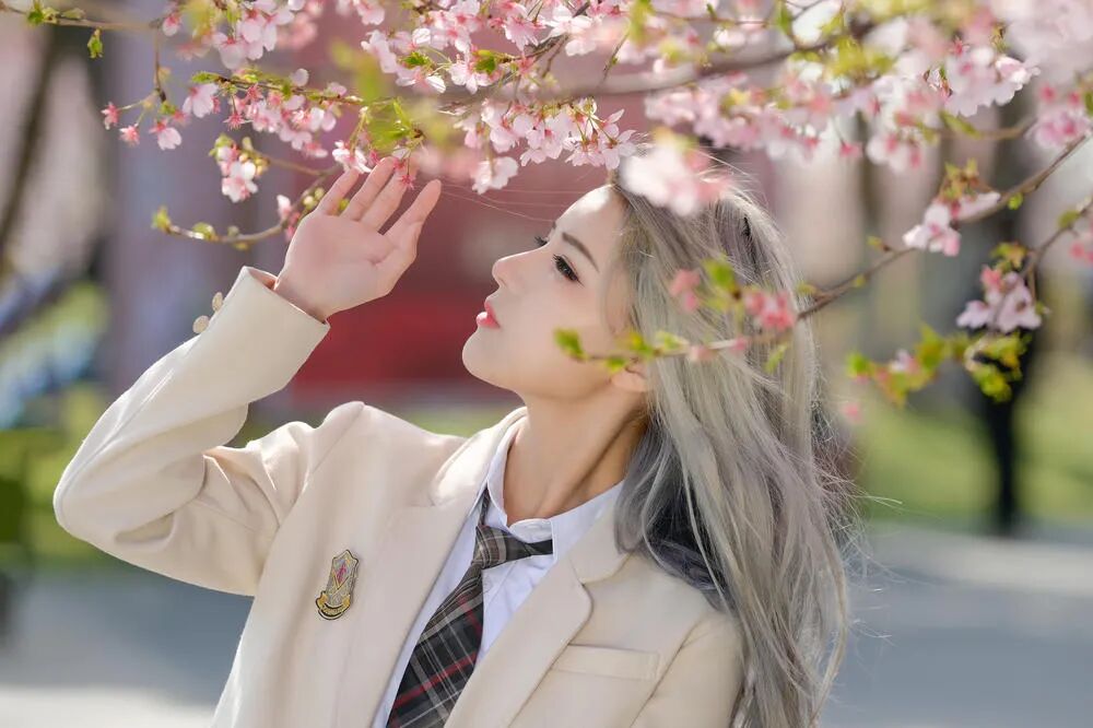 点评:拍摄技法上,我觉得没什么大问题。人物打扮比较精心了。环境也不错。人与花的互动也算有设计感。整体来说唯一违和的就是……我觉得姑娘的妆容太浓了。