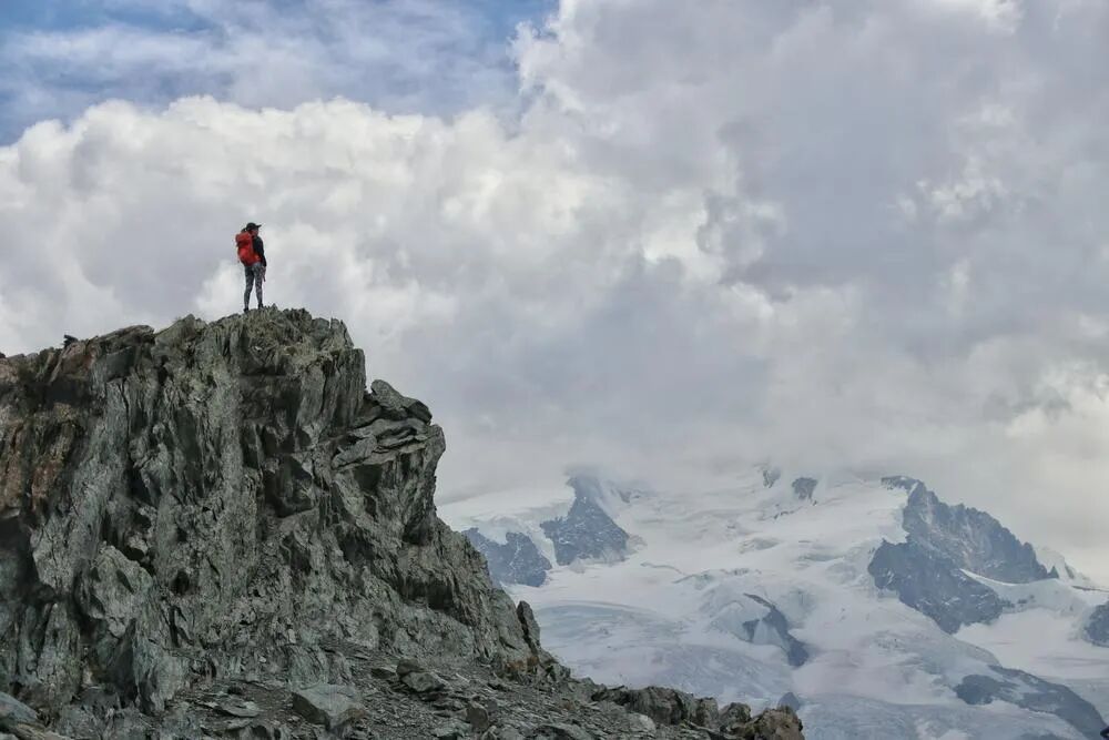 在瑞士阿尔卑斯山脉徒步时遇到的小姐姐,感觉很有气魄配上场景。
