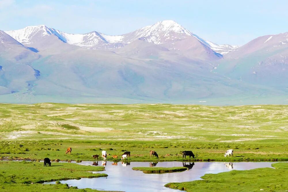 点评:水不错,草地嘛,也还凑合。远处雪山嘛,也还行。这群牛嘛,也还可以。你在这就要等两件事儿。