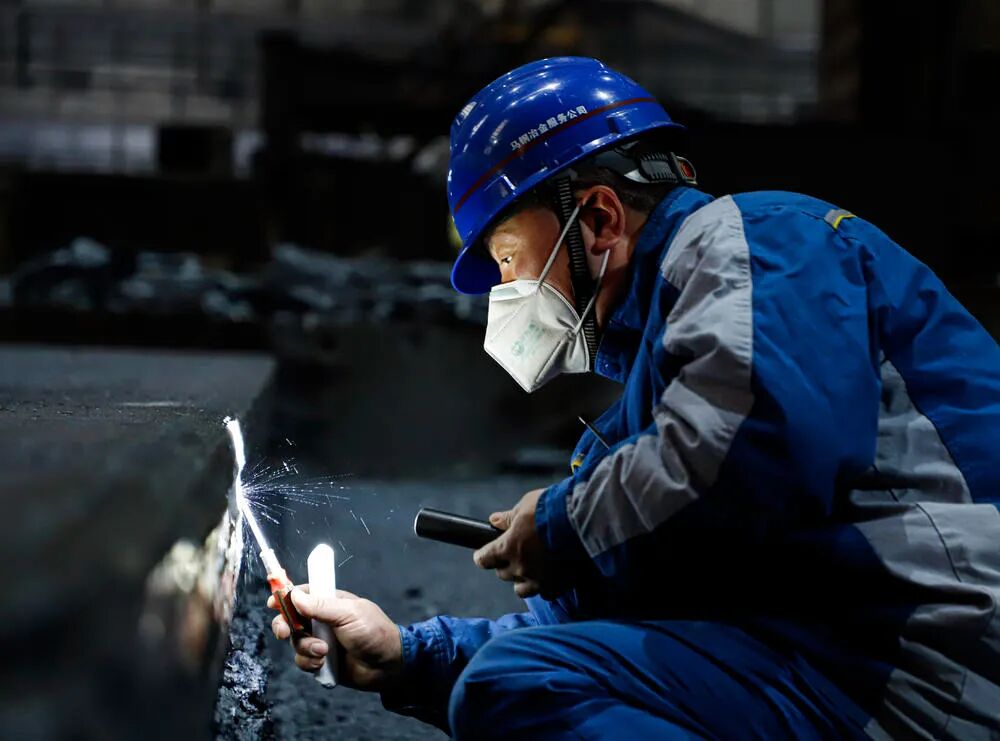去基层采访时,看见一名领行工正认真地对板坯进行检查,赶紧蹲下来抓拍了好几张。在后期整理图片时,发现了这一张,看到了打磨检查时的细节,觉得非常开心。因为工厂室内很昏暗,所以图片整体颜色也比较暗。望得到校长点评。