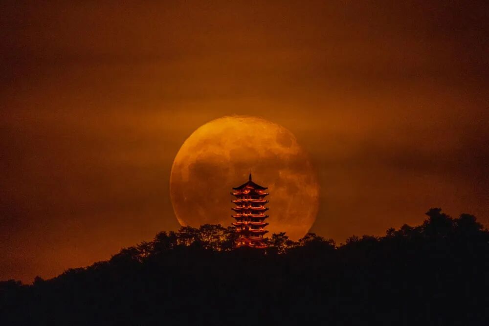 缙云塔月出,昨晚再去,终于算是拍到,可惜天空不透。