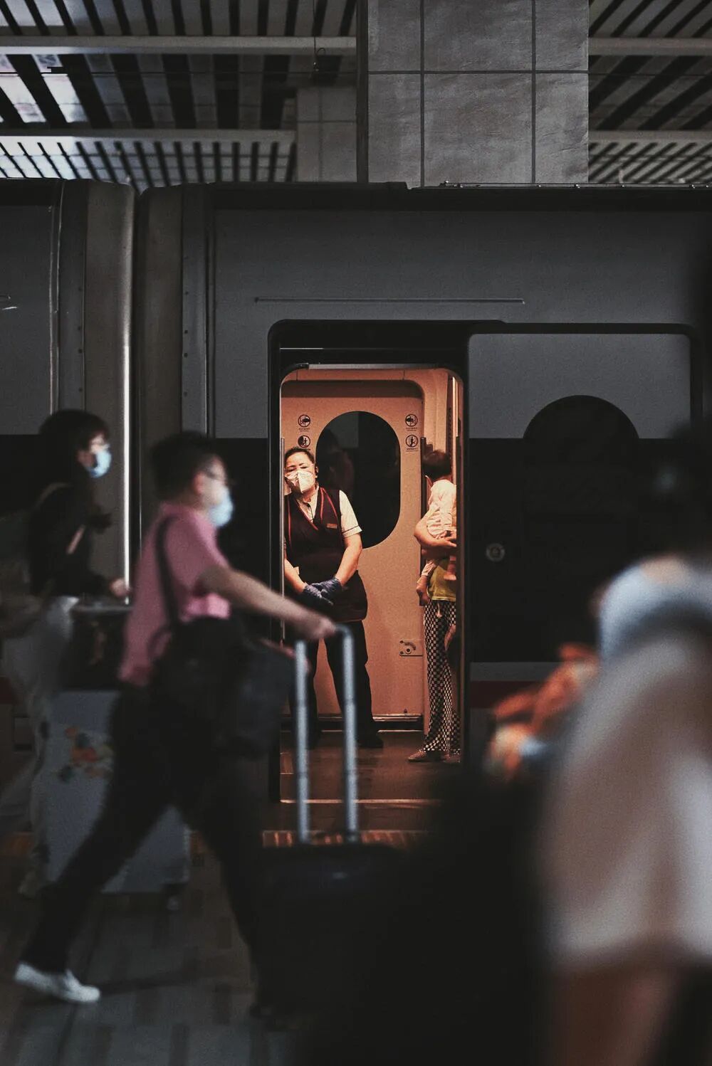 点评:你对焦在了车厢里乘务人员,此时此刻,她的状态确实不错。画面有前景的人物,这些人物增加了画面临场感,以及层次感,我觉得挺好的。虚实结合的画面,也让主次分得很清楚。