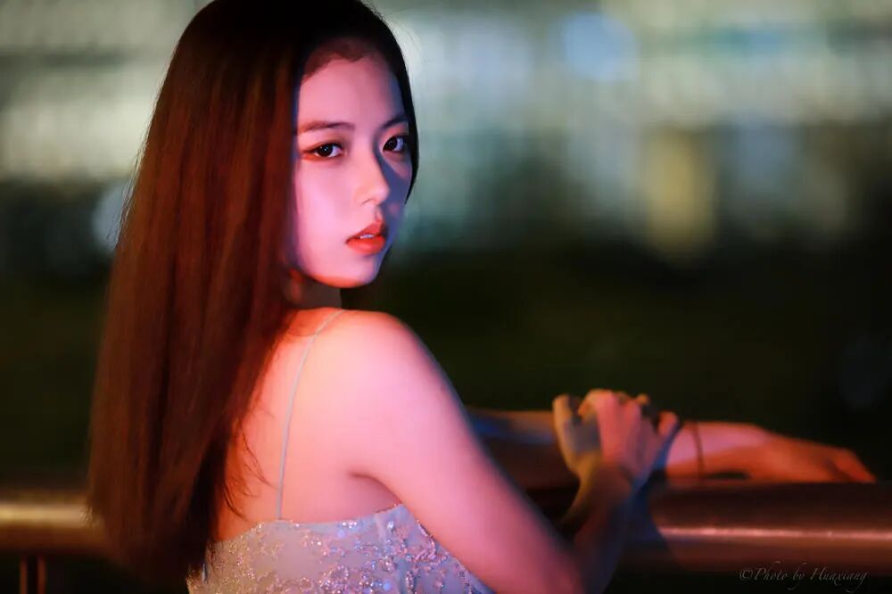晚上参加活动,夜拍小姐姐。侧边打了偏红的灯光,135定焦镜头,镜头限制,人多离得较远,主要拍特写多。后期有提亮。