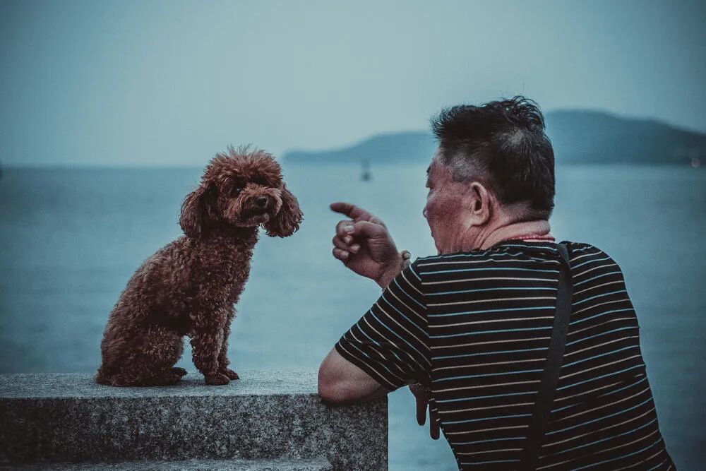 点评:挺有意思的一张照片。老人似乎在说狗。可惜的就是你吸引力狗,狗在看向你。老人的状态非常好。如果小狗是被说得低了头,或者很委屈的样子,画面的故事感就很足了。现在小狗看你,多多少少有点出戏。