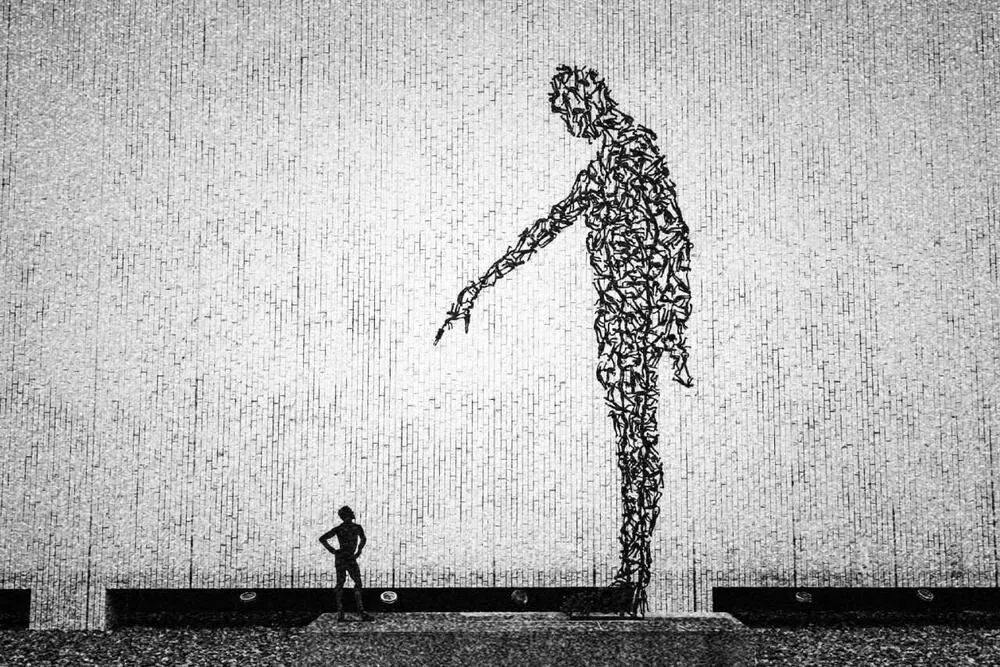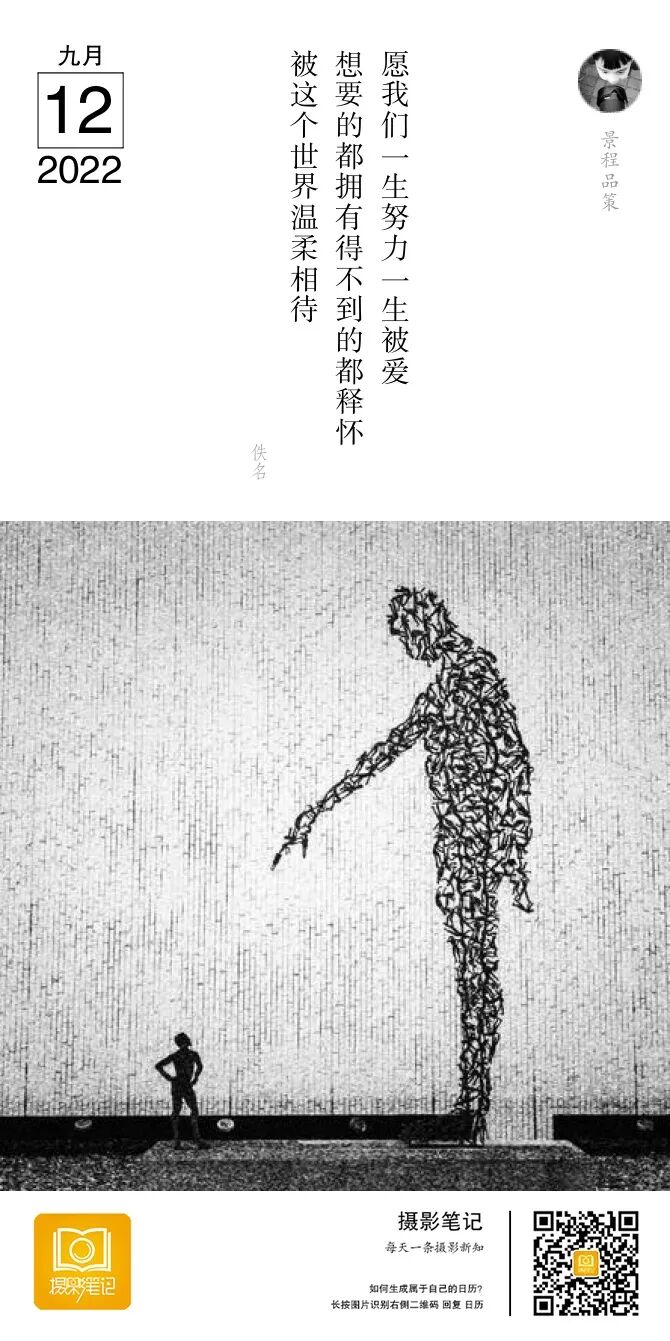 构图来说,规规矩矩的三分法,挺好。同时因为小人物,所以人物往下压。