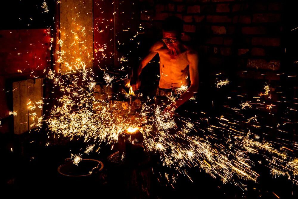 山里小村庄才保留的打铁铺,也只有这样的老人才能坚守。靠得太近一件化纤速干T恤被溅出的火星烫了四五个洞,相机镜头也被溅到了还好相机镜头有UV镜,好在人的皮肤上没有溅到火星,不知道这老人赤膊是怎么挺过来的。