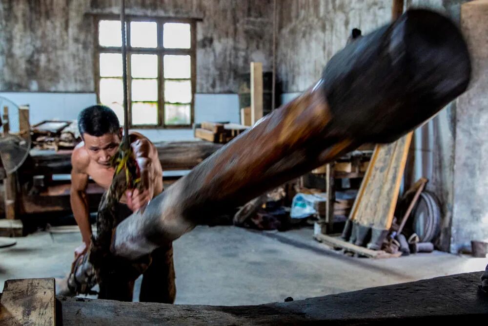 但是,咱们拍摄时还要考虑取景的时机。这两张挺好的,没什么毛病。但是看过土法榨油的都知道,在悠这个大木头的时候,人物的动作很像舞蹈。所以我觉得你还可以抓取更好的瞬间。