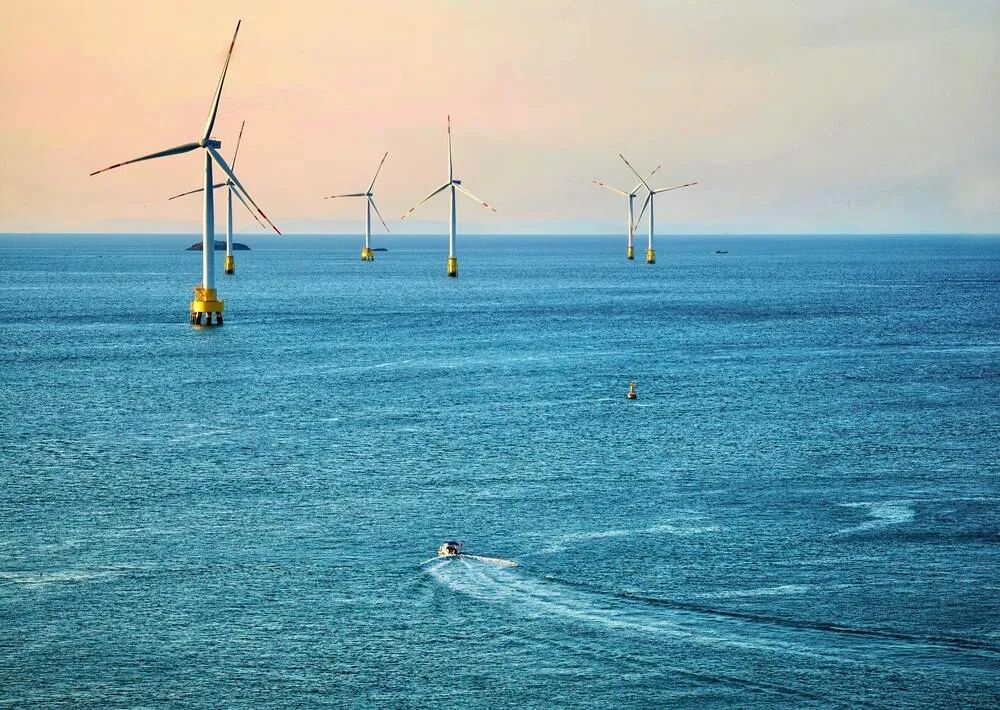 《海上风车》,傍晚日落时分,平潭的海上风车近大远小地排列着,我期待一个活物点缀这个画面,这时一艘船开了过来,在海面上划出了线条,正好和风车呼应,我快速连拍下来。后期调了色彩饱和度、对比度,欢迎大家点评。
