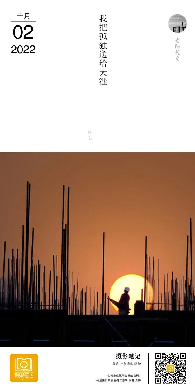 点评:取景是一个工地,一个人一个太阳。真的是很不错呢。尤其是这个工地场景简单,也表现出你说的韵律了。