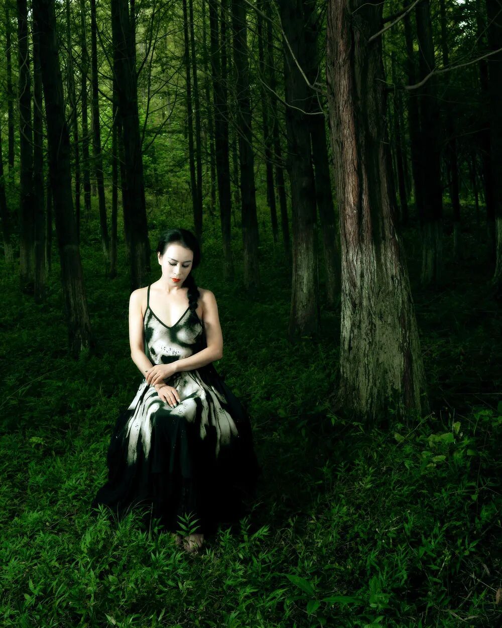 傍晚在一片小树林拍摄,拍摄时光线不是很好,原图有点暗,后期以绿色为主色调并提亮,想表现生机勃勃、静谧、独处的氛围。