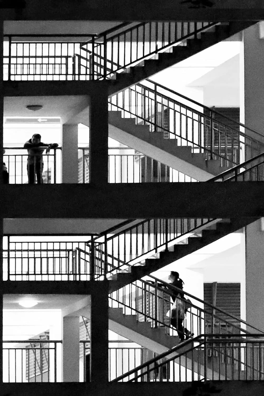 点评:应该是手机拍摄的。画质差了点。两个楼层,两个人,配合建筑,很好。人物状态也很好。