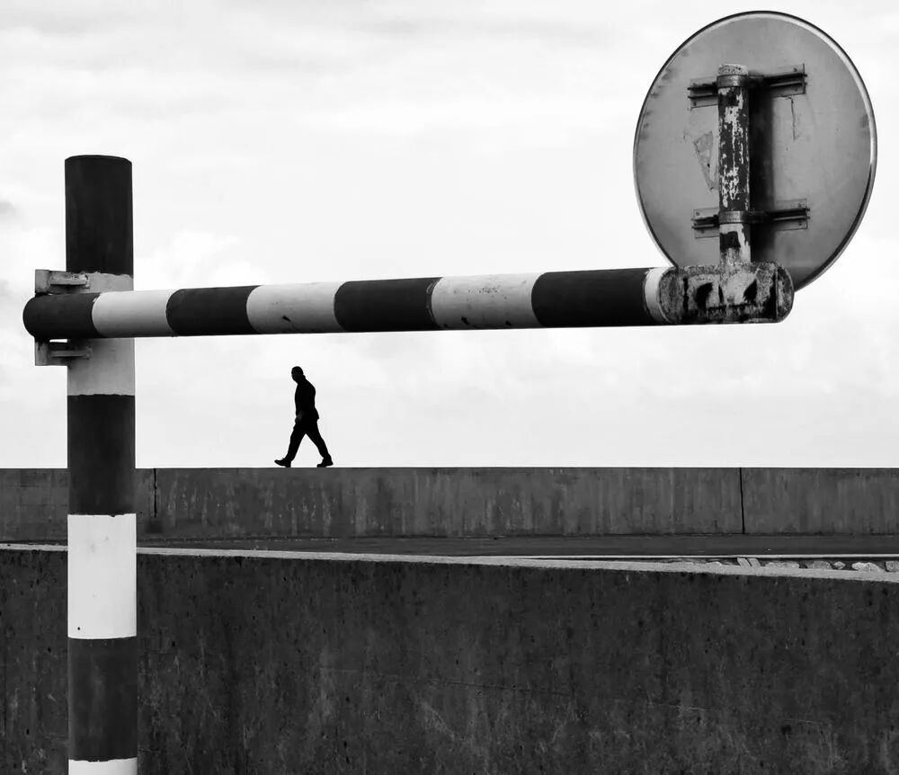 点评:非常有味道的一张手机拍摄的作品。依稀中有老陈和李白兔子老师的影子啊。利用环境构图,让人物走到合适的位置合适的状态。黑白的处理,让画面有一种明确的惆怅的负面情绪。