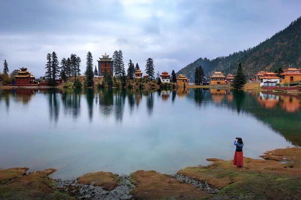 《措卡湖畔》,365拍摄计划之226/365,手机作品。川西措卡湖畔,一个小姐姐在拍摄美景。敬请各位老师同学们点评指正,谢谢!