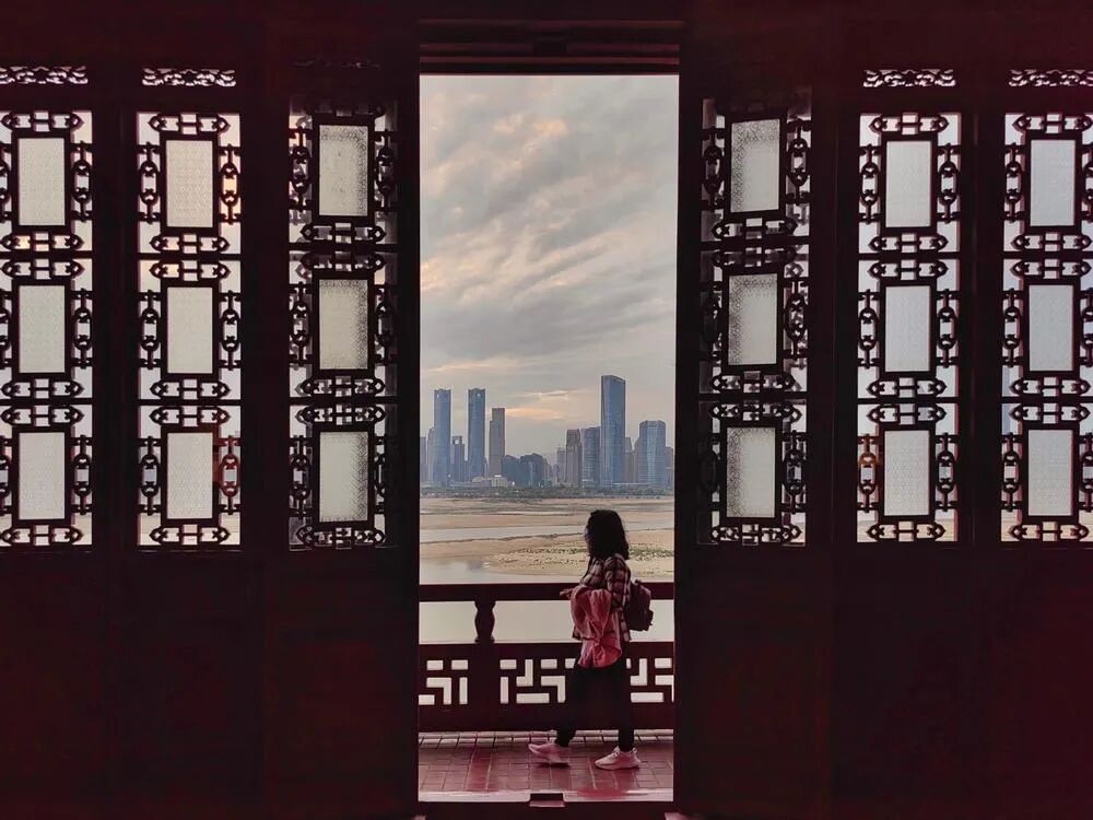 窗外的风景:框架构图,古建筑与城市的对比!华为手机,主摄镜头,后期水平矫正
