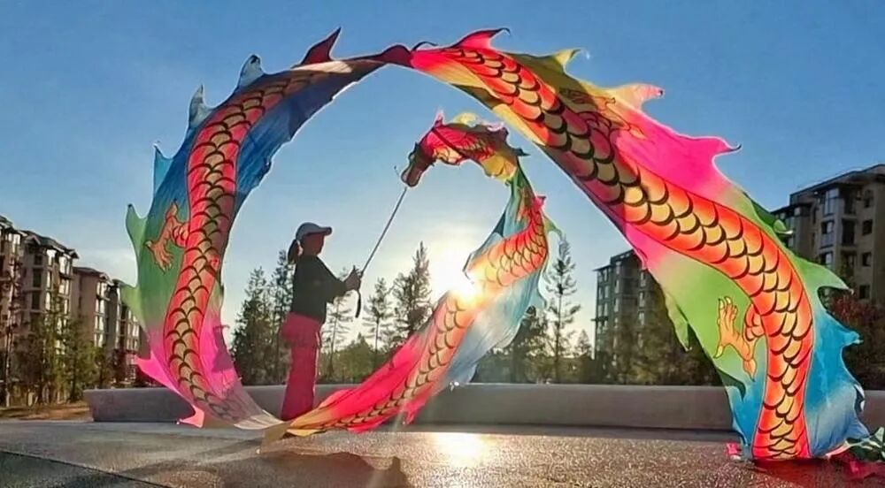 点评:抓取瞬间非常棒。这个龙可以说处于最好的瞬间了。人物姿态稍微差了点,但是没关系。我们的注意力都在龙身上。