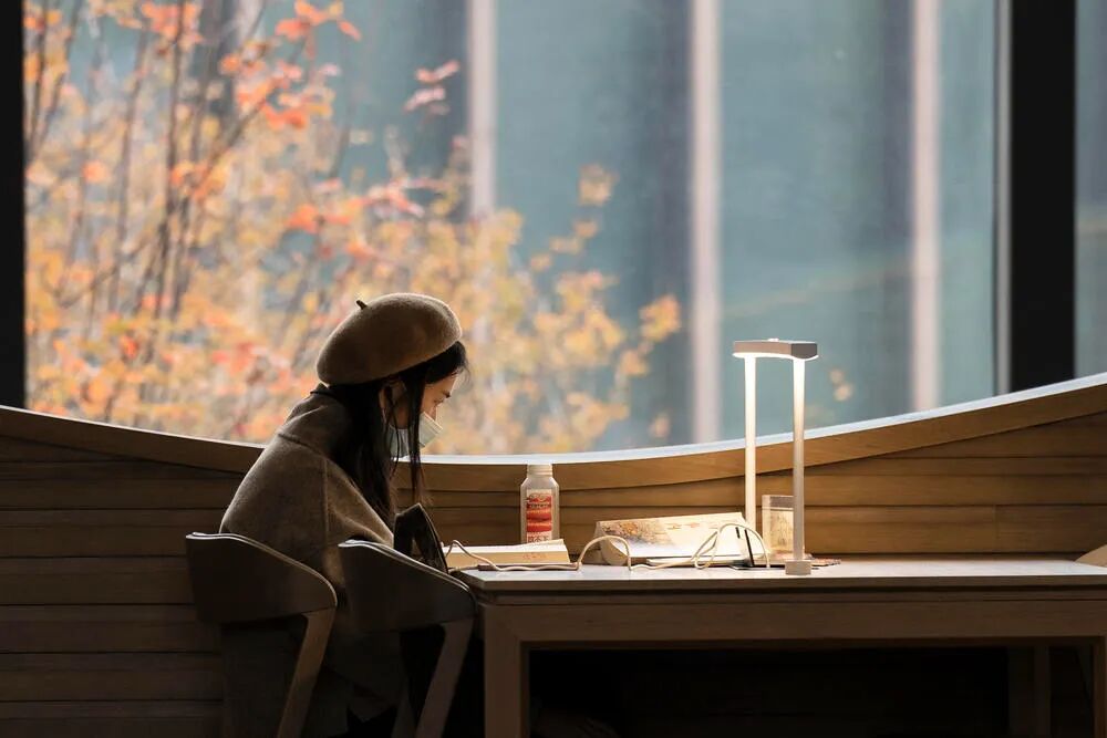 点评:这一个瞬间非常安静。人物专注,状态还不错。桌子上的灯,以及窗外的光线,都很好。黄叶很渲染氛围。