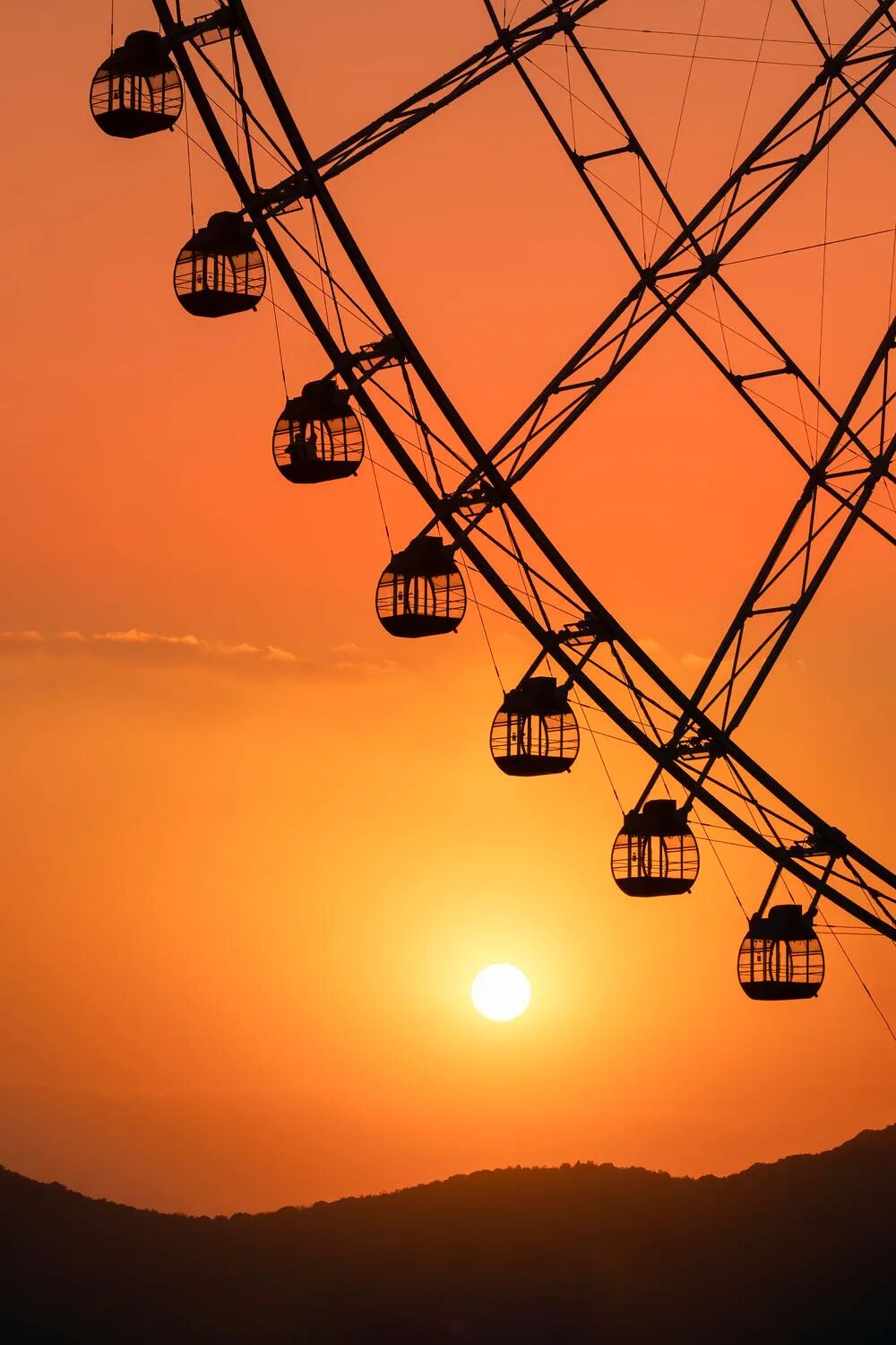 点评:摩天轮并不需要拍摄完全,一部分就挺好。远处是远山和太阳。这些个元素放在一起就挺好的。