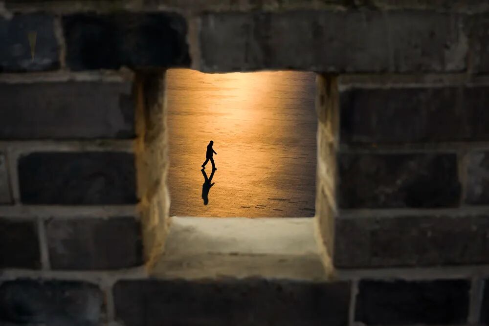 这是梅里古镇城墙上的孔,特意查了一下,这种每个垛之间一尺见方的瞭望孔,称为“悬眼”,也称“爵穴”。《墨子·备城门》“堞下为爵穴,三尺而一”。悬眼的用途是瞭望和射击,当敌军要攀上城头时,守军还可以站在城头通过悬眼向敌军穿刺。有的城墙下部还设有悬眼,下部的悬眼又叫礌石孔。拍摄时,正好正对广场,而阳光透过广场边的树缝,把一片光投射下来,形成耀眼的反射光斑。于是,老规矩,等吧!然后,以下省略200字……