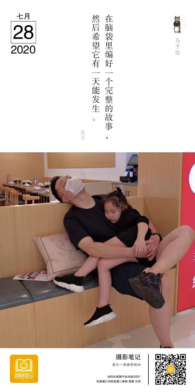但是这照片也有好的一面。就是取景的瞬间很有意思。爸爸和女儿都睡着了。而且明显是在一个厂商或者餐厅里。挺符合你要表达的主题。
