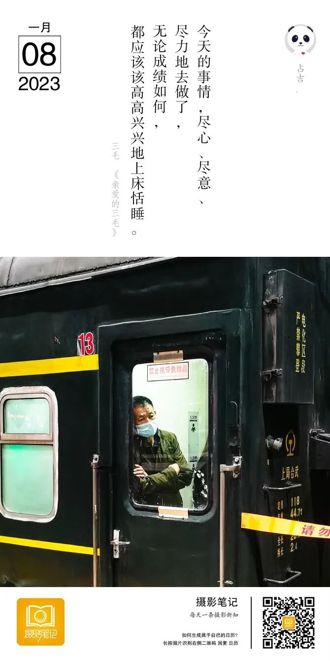 点评:人物的眼神很吸引人,场景交代也算是很全面了。就是一个在火车上等火车出站的人。