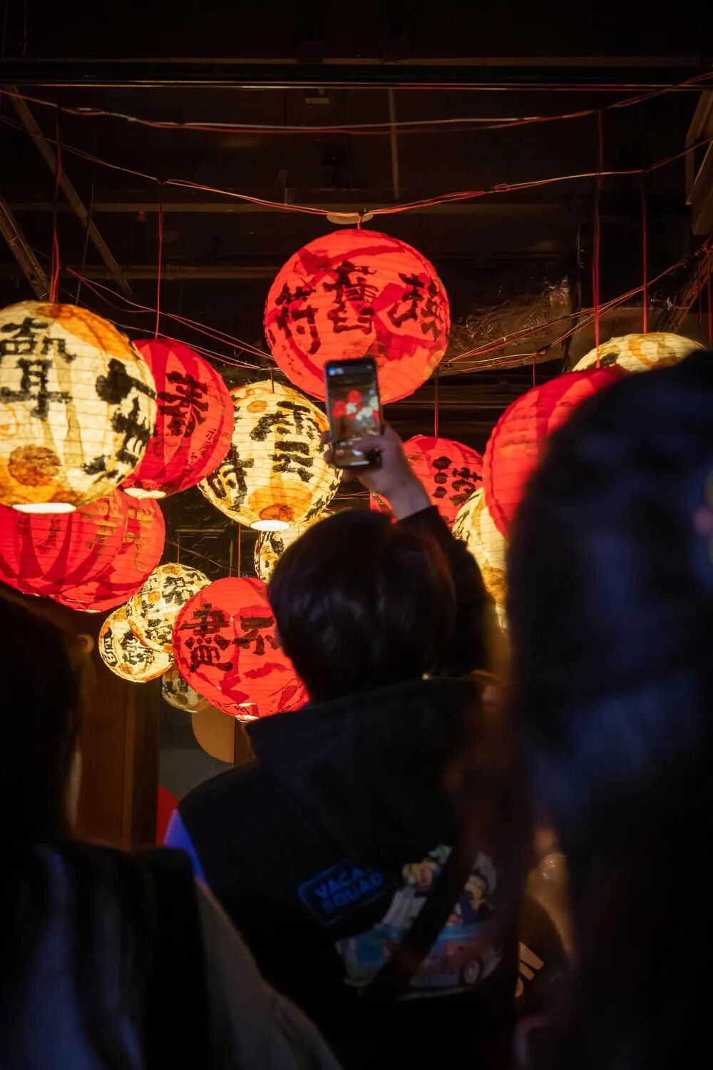 在广州逛新春花市的时候拍的,有个景点晚上有灯笼,好多人挤在门口拍照,等了一会,刚好有个男生举起手机拍,我就从他后面把这一幕抓下来了,但不知道对焦是否正确,应该对焦在灯笼上还是对焦在这个男生的手机上?求指点