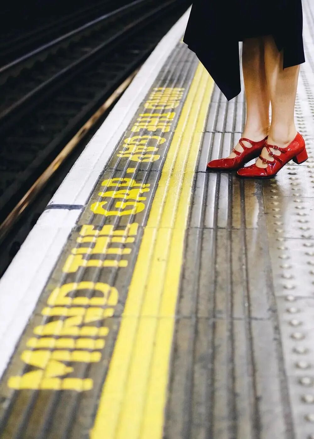 这张我看作者和评论在讨论踮脚的问题。我觉得可以踮脚,这有一种期盼的感觉,可以理解为在望向黑洞里面,找一找有没有地铁的车灯——等车来。