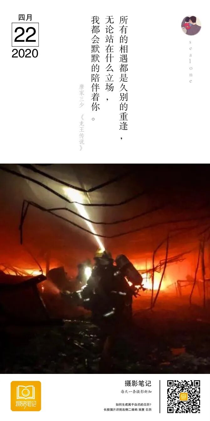 取景:这是一张在真实火场里拍摄的消防员在扑救火灾时的照片,着火建筑的顶棚已被大火烧塌,一名消防员半蹲着、背着空气呼吸器、手握水枪在灭火。设备:由于我自己也身在火场,没有携带相机,只能用手机(iPhoneX)拍摄,夜间成长质量确实不好,放大后无细节可言。构图:把消防员放在画面中央,四周是残垣断壁,前方是熊熊烈火,突显出消防员作战环境的险恶,也展示出消防员敬业的精神。后期:简单进行了调色。