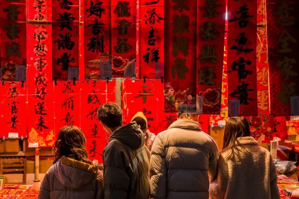 年前拍摄,上海路是整个邕州年味最足的地方了,大家都到这购置年货。路过一家对联摊感觉光线氛围还不错,我猜可能是两对新人准备迎接的组建小家庭后的第一个春节吧。祝他们新的一年红红火火。后期的话也是朝着暖色调调整,前期保留暖色调的自动白平衡倒是帮助很大不知道有没有机会让校长翻一次牌