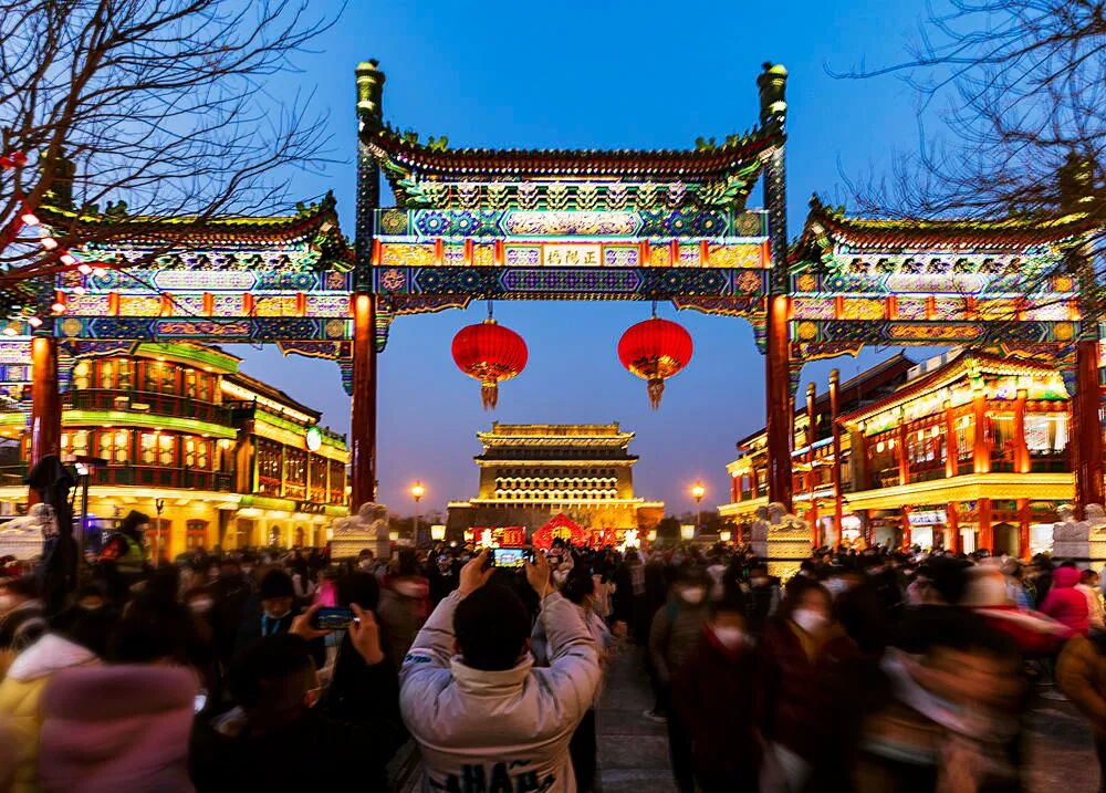 元宵节的前门大街人潮如涌,走过正阳桥,再回头看远处的正阳门,觉得来一张大场景不错。将相机举到头顶,通过液晶显示屏取景,将近处游人和远处的正阳门纳入画面,以正阳桥牌坊左右对称构图;游人有的在走动,有的在驻足拍照,我打算用慢门拍出走动的人虚化的感觉,游人走的很慢,所以设定了1/6的快门速度,最终形成了游人有虚有实。问题是可能拿得不够稳,第一张牌坊似乎有点虚。请老师们点评!