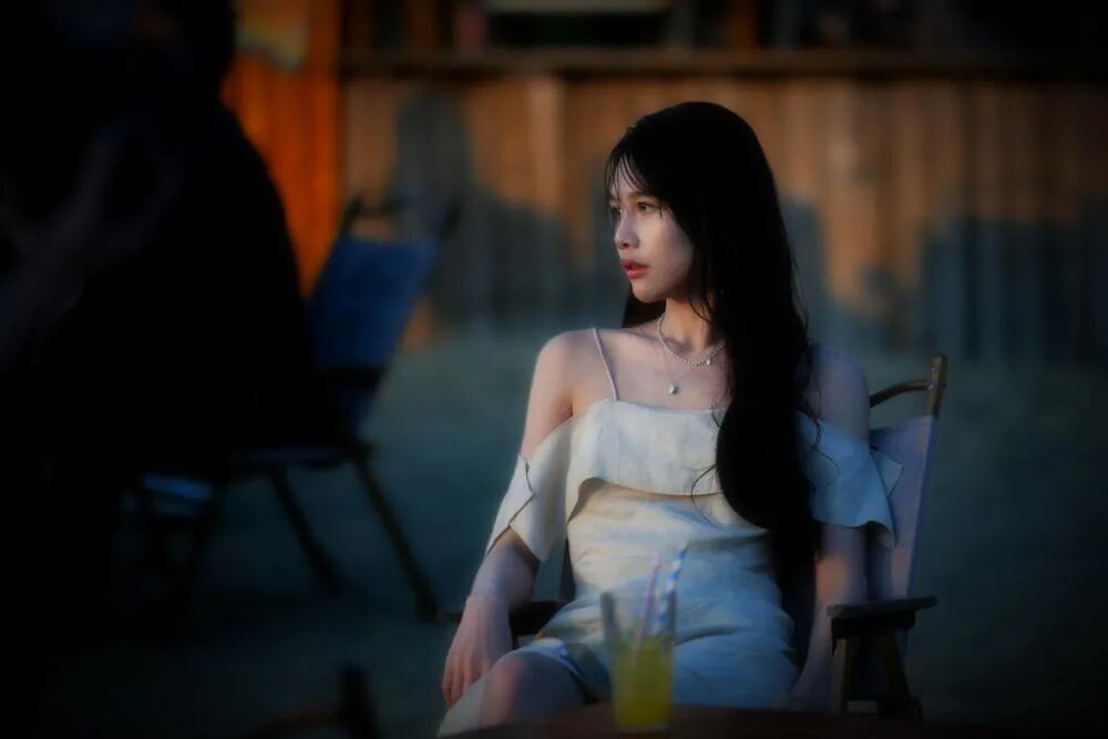 点评:眼神还好,稍微有点飘远。所以没有明显的蹭拍的感觉。姑娘是个好姑娘,侧脸确实不错。