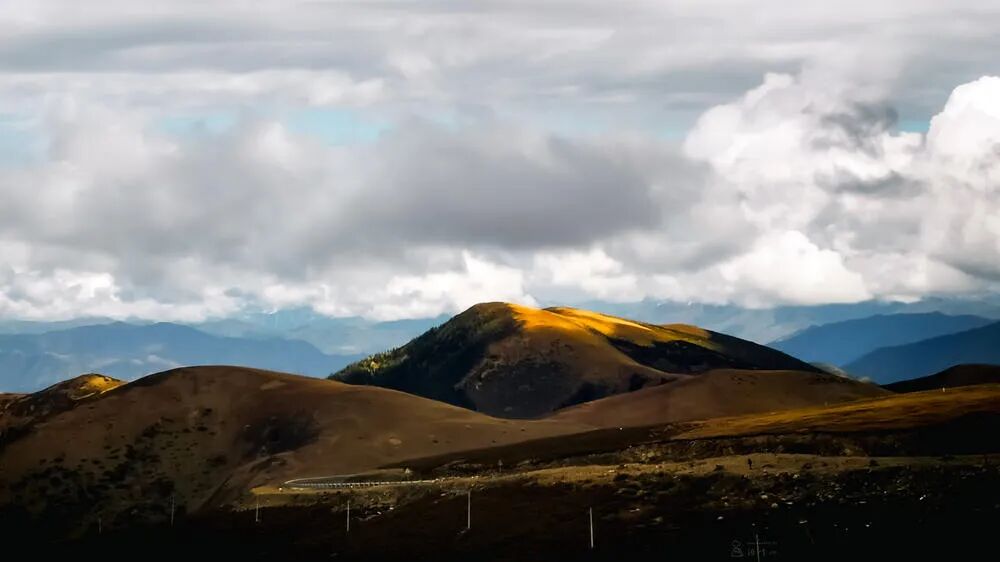 首先取景范围之中,有很多问题。比如这些个杆子,更近的地方还有条路。那么在拍摄的时候,就会去考虑这些元素都要如何出现在画面中。比如能不能借助路来引导目光看向远山。