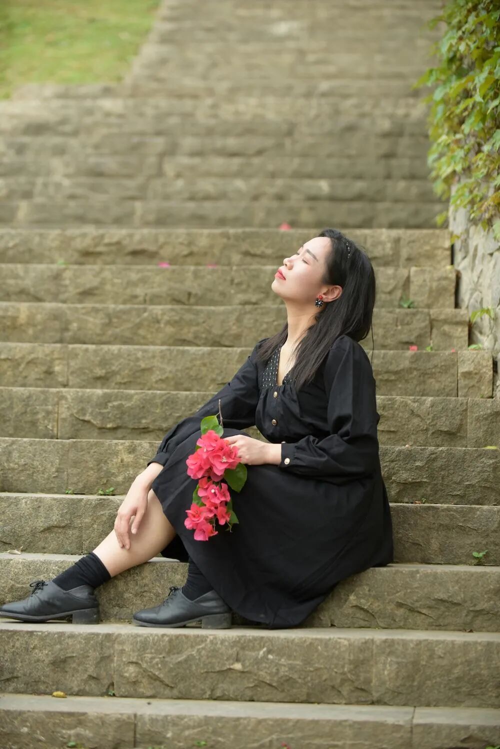 你说你胡拍吧,你好歹知道选择这么个场景。选择这个台阶做背景吧,你不知道端平咯。