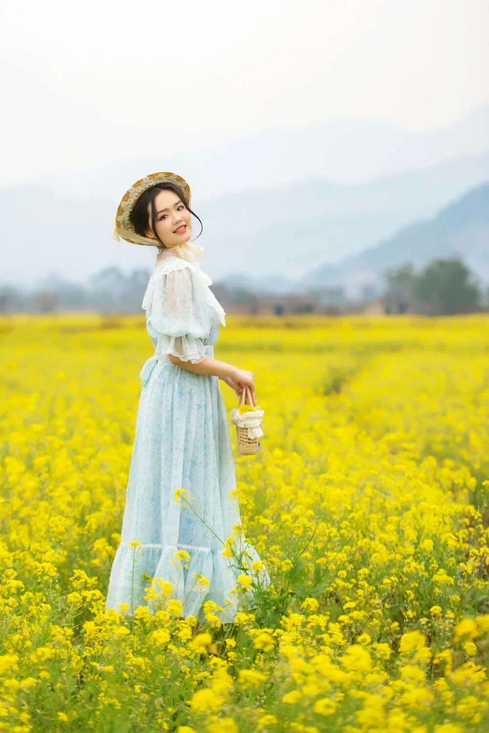 说你完全不懂拍人像吧,你知道让姑娘摆个姿势。说摆个姿势吧,你看你让她摆了个多难受的姿势。小腿肚子这么看显得腿很粗。鞋子袜子加这个长裙子,显得腿特别短。人物拿着个花,腆着脸也不知道在享受啥。就真的不自然啊,特别别扭。