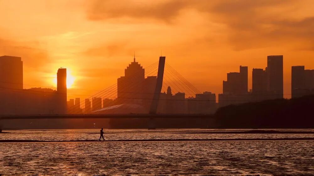 看看。之前不知道他们在看什么,后来才发现这是两个晨钓的人在观察鱼情。