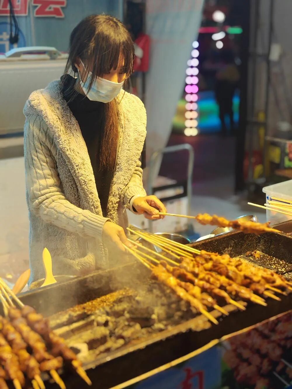 点评:姑娘是个好姑娘,可以说是烤串西施了。但是吧,我们拍摄的是一个人物,不说带上了场景,这也主要是就一个人物。