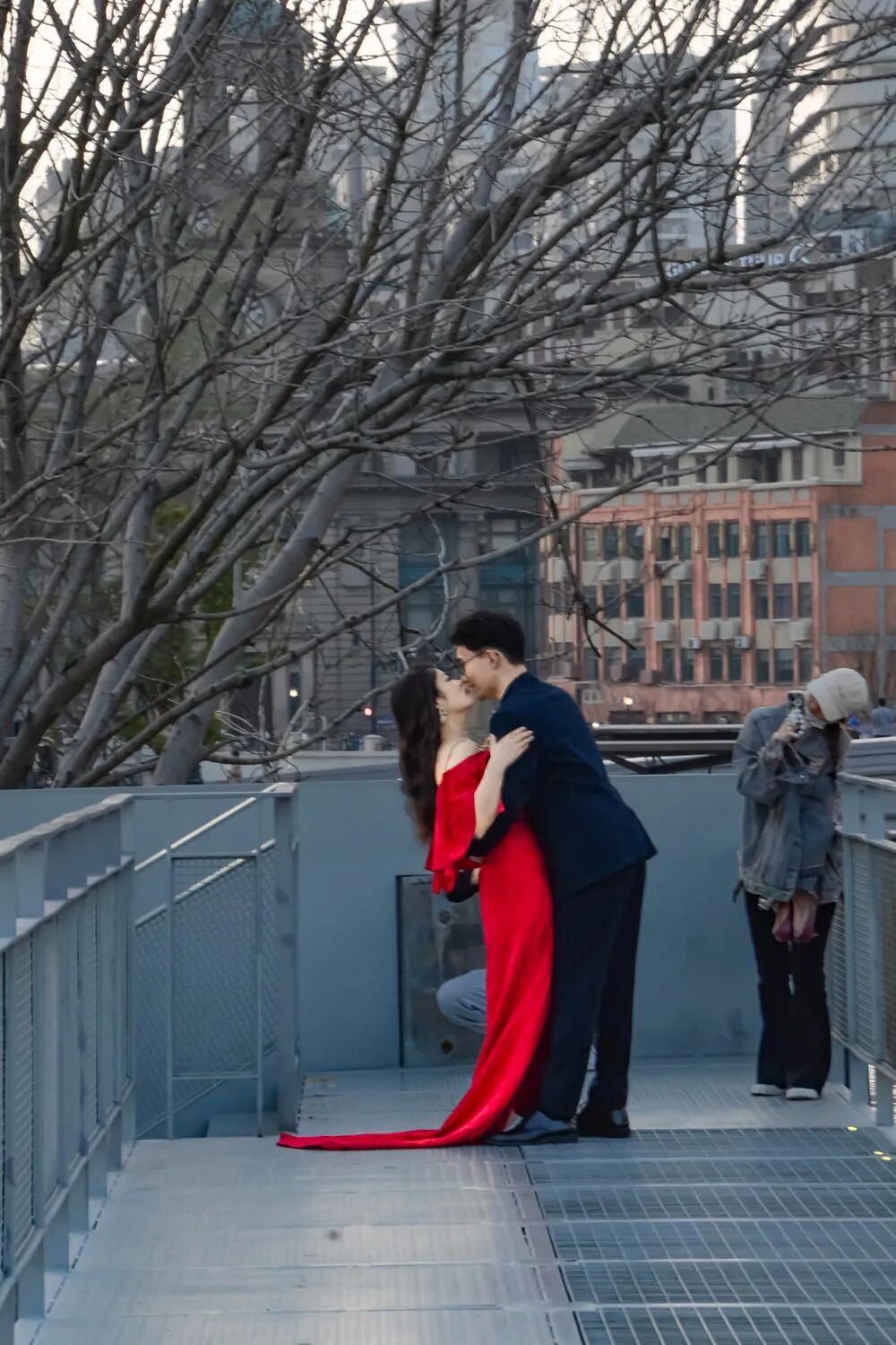 点评:这张的亮点在于俩人的亲密动作,以及一个小姑娘很可爱地在拍摄。