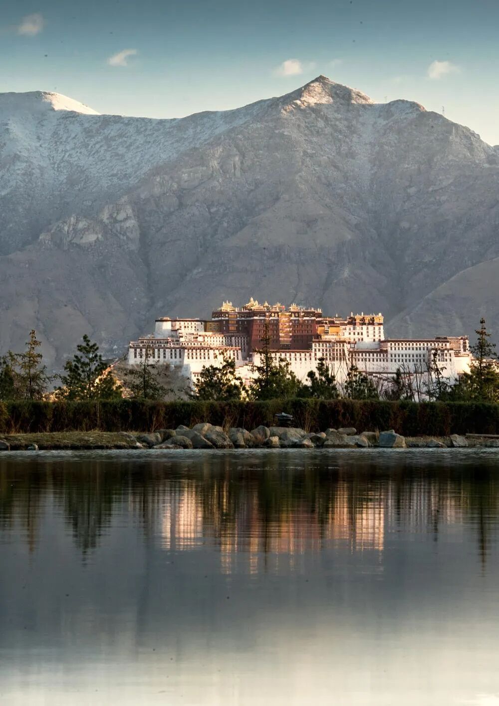 拍摄机位是距离拉萨市比较远的南山公园的小水塘前拍到布达拉宫的倒影,也是网红打卡地。很幸运的是我们仅仅拍了几张倒影,很快就看不到倒影了。