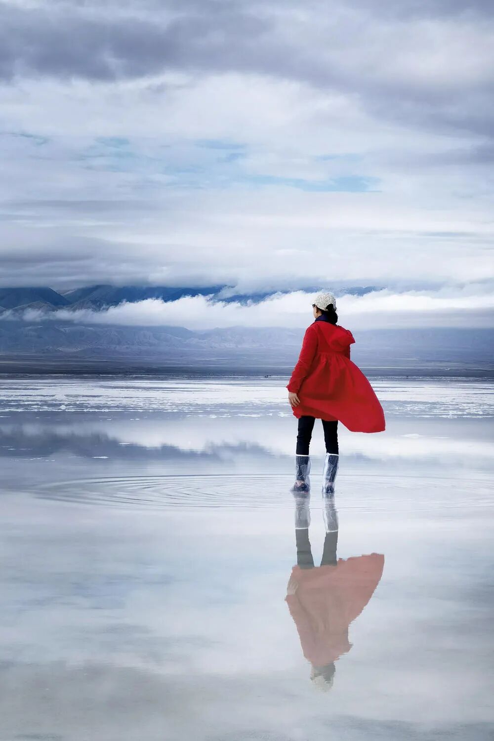 《茶卡》,№413,手机拍摄。脚下的一圈涟漪挺有意思的,可惜天空不理想。敬请各位老师同学们点评指正,谢谢!