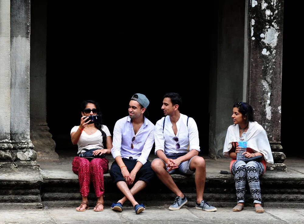 柬埔寨拍摄。之前有一张大全景带环境的照片,这是抓拍的几个人,缩小了取景范围。