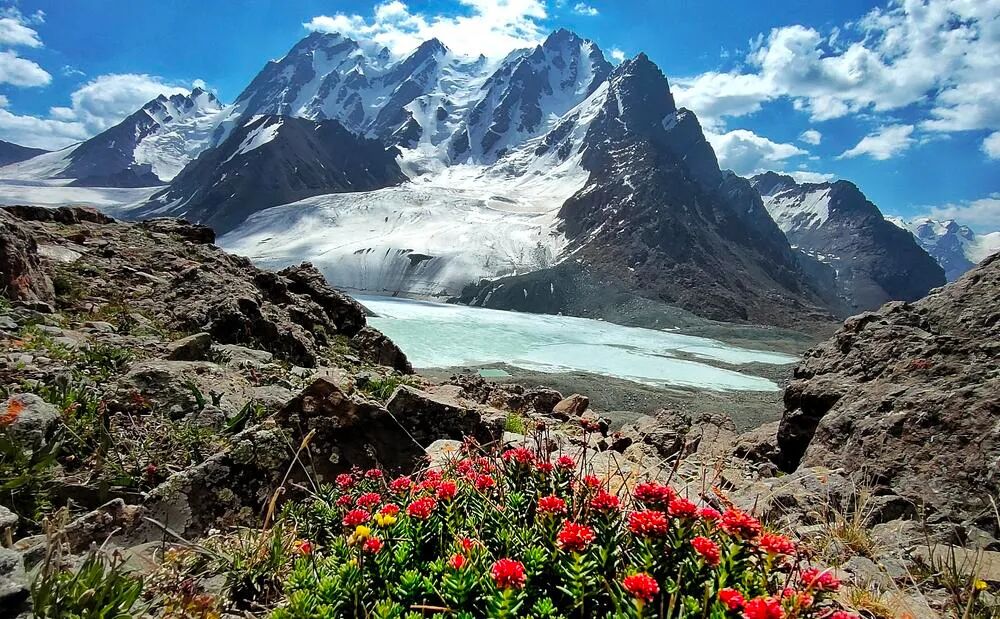 我眼中的博格达峰在网上看的太多的博格达峰的图片都是以雪莲在一块儿照的,而我这次去的时间也不对,雪莲花还没开,我眼中的博格达峰山前就是各式各样的野花。