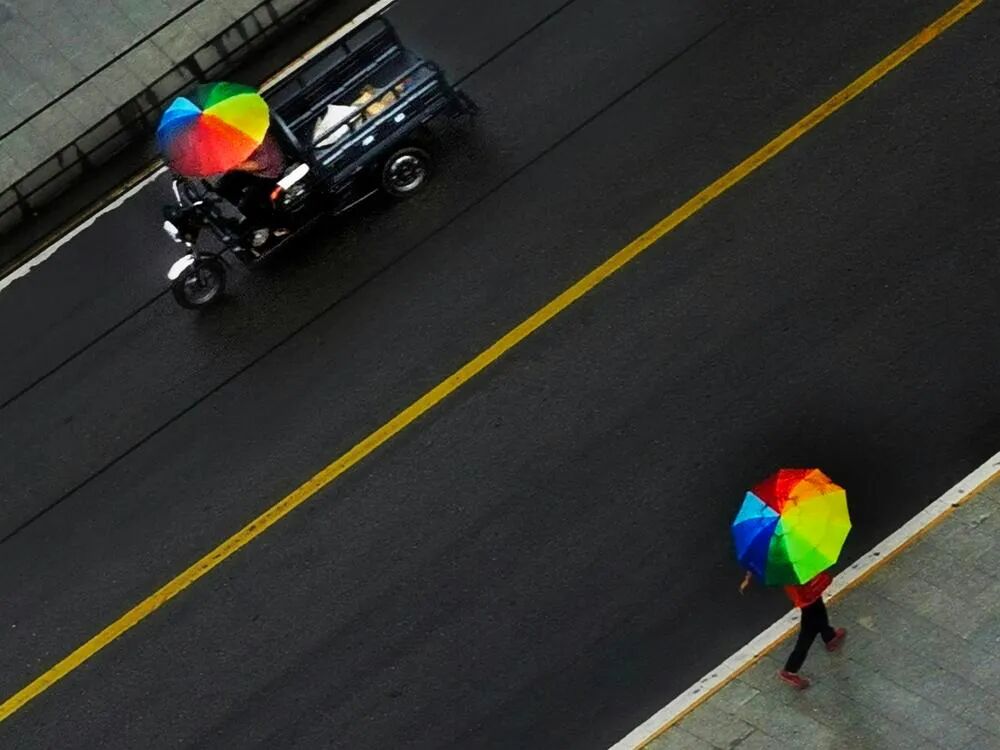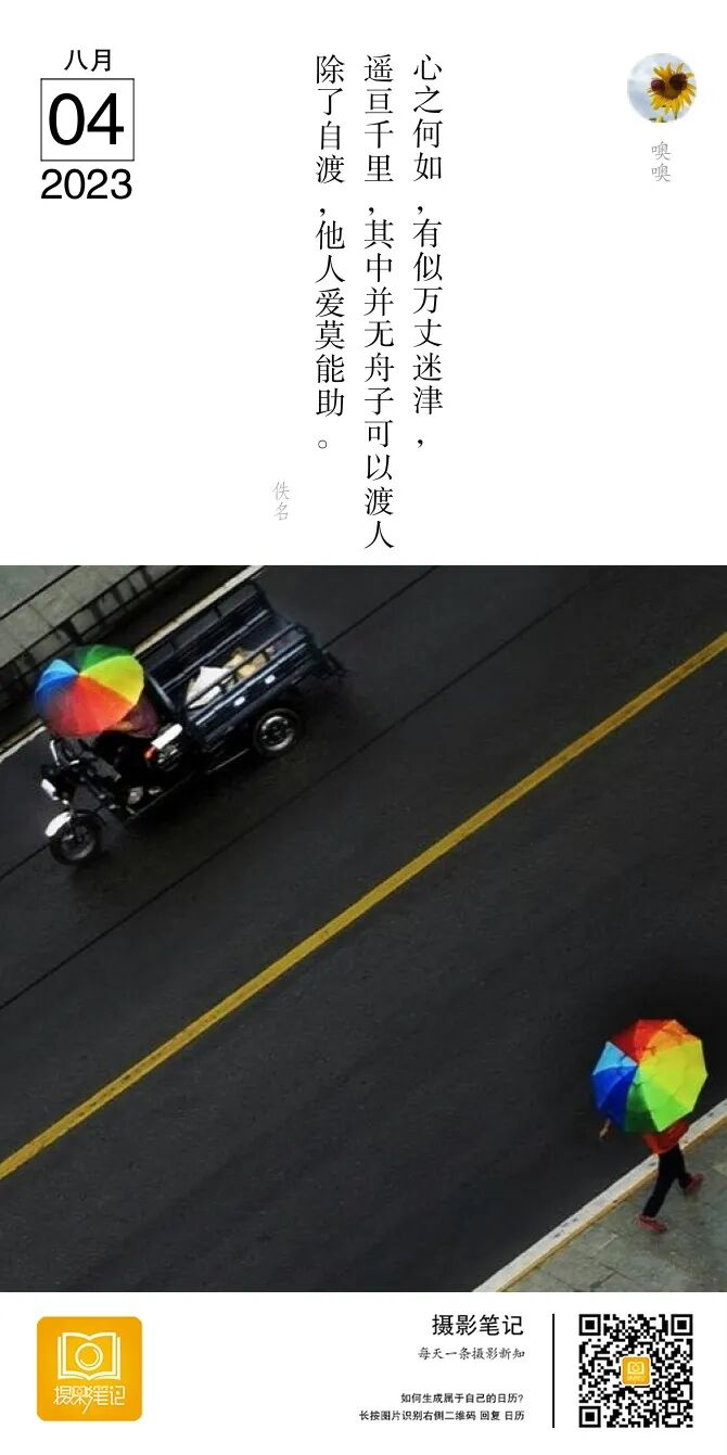 点评:画面干净,两个伞非常鲜艳,同时这两把伞就像双胞胎,不能说毫无不同,可以说极为相似了。