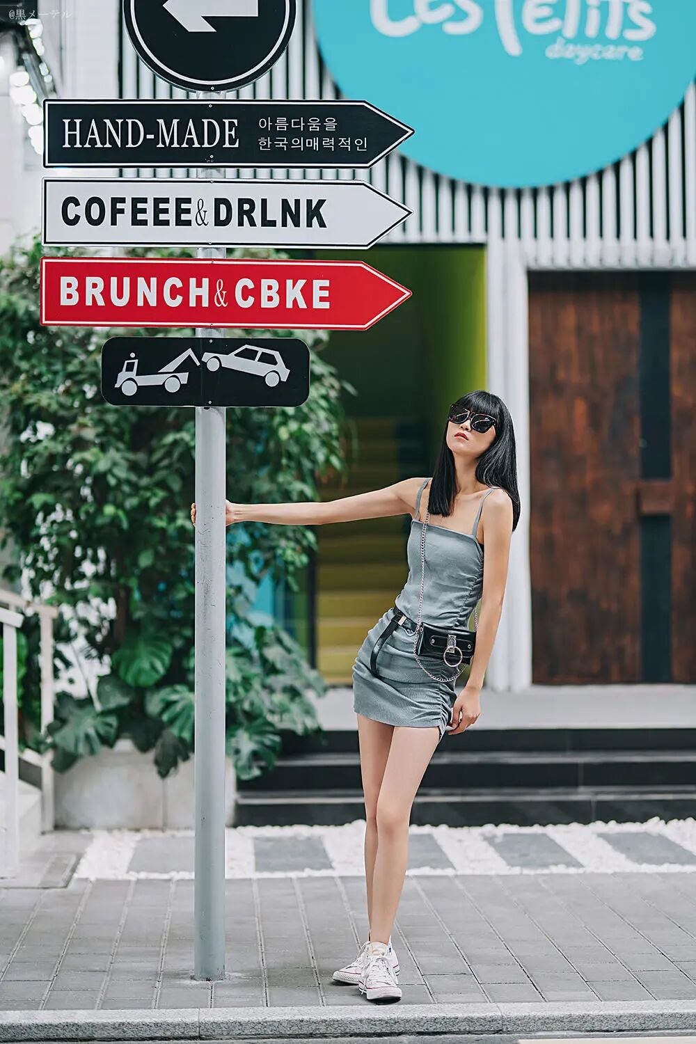 点评:这地儿不错,姑娘也不错。姑娘想要做比较酷的表情挺好,但是我觉得现在的表情姿态有点……这个拉着路牌和这个表情有点不搭。你再琢磨琢磨。我是觉得这个小姐姐表现力挺好的,所以你可以多尝试。