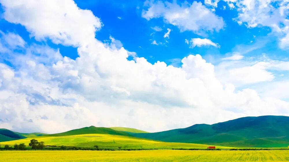 然后曝光方面,后期的饱和度调节太多了。所以云太白,天太蓝,田野太黄。