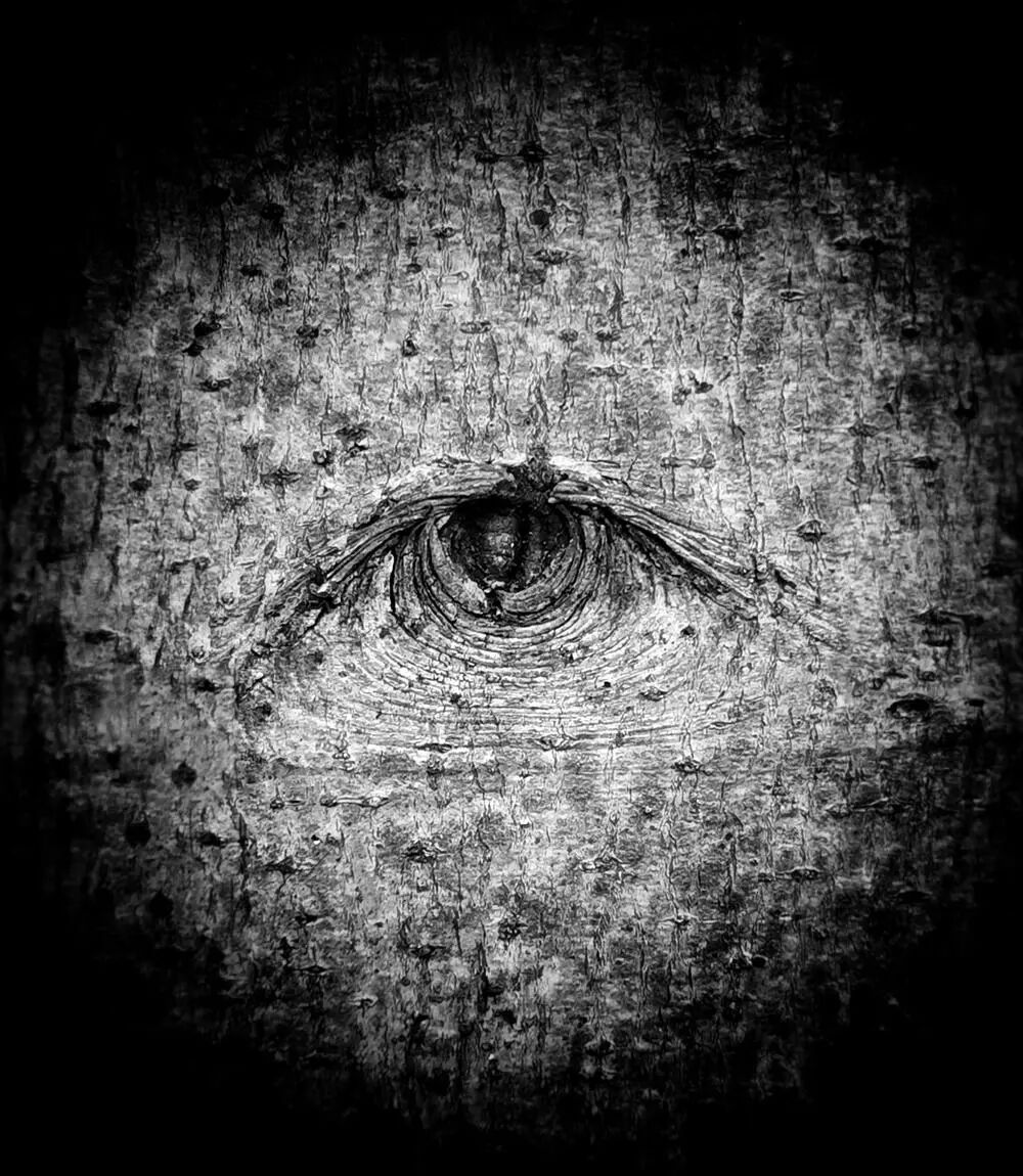 森林之眼丛林中偶遇的一棵老树,树干上的沧桑疤仿佛一只看透一切的眼睛,直击人心,手机拍摄叶子后期