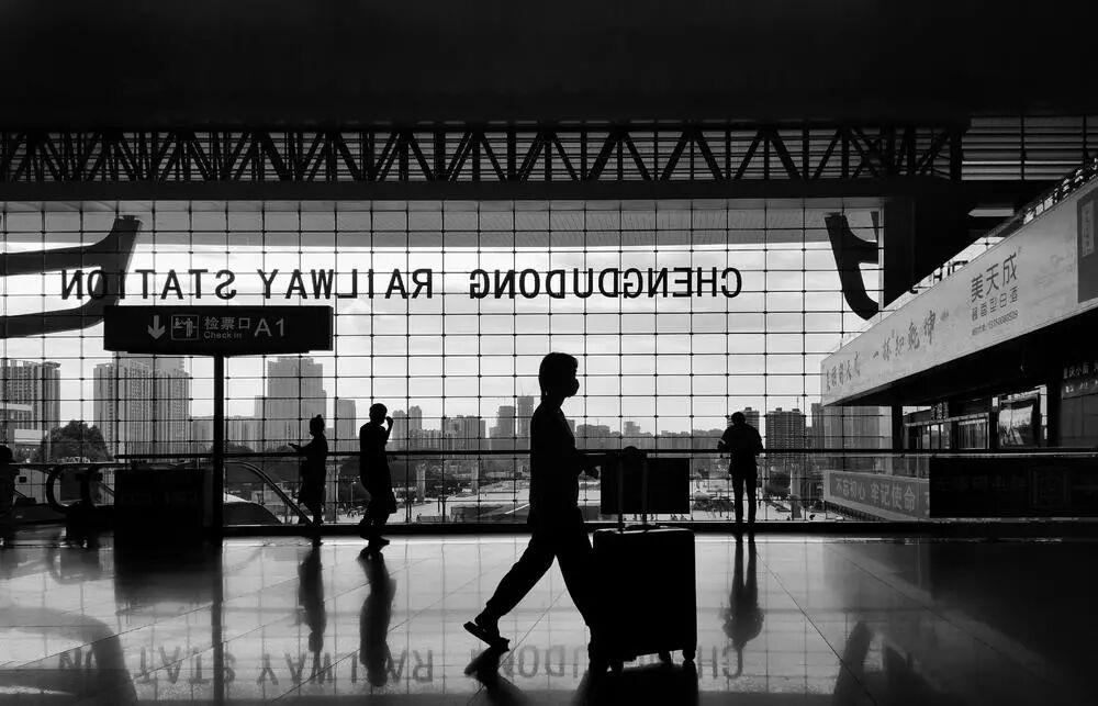 点评:火车站和机场总有这样的大场景,同时也有行色匆匆的旅者。逆光拍摄,剪影效果算是这种场合很常见的场景了。