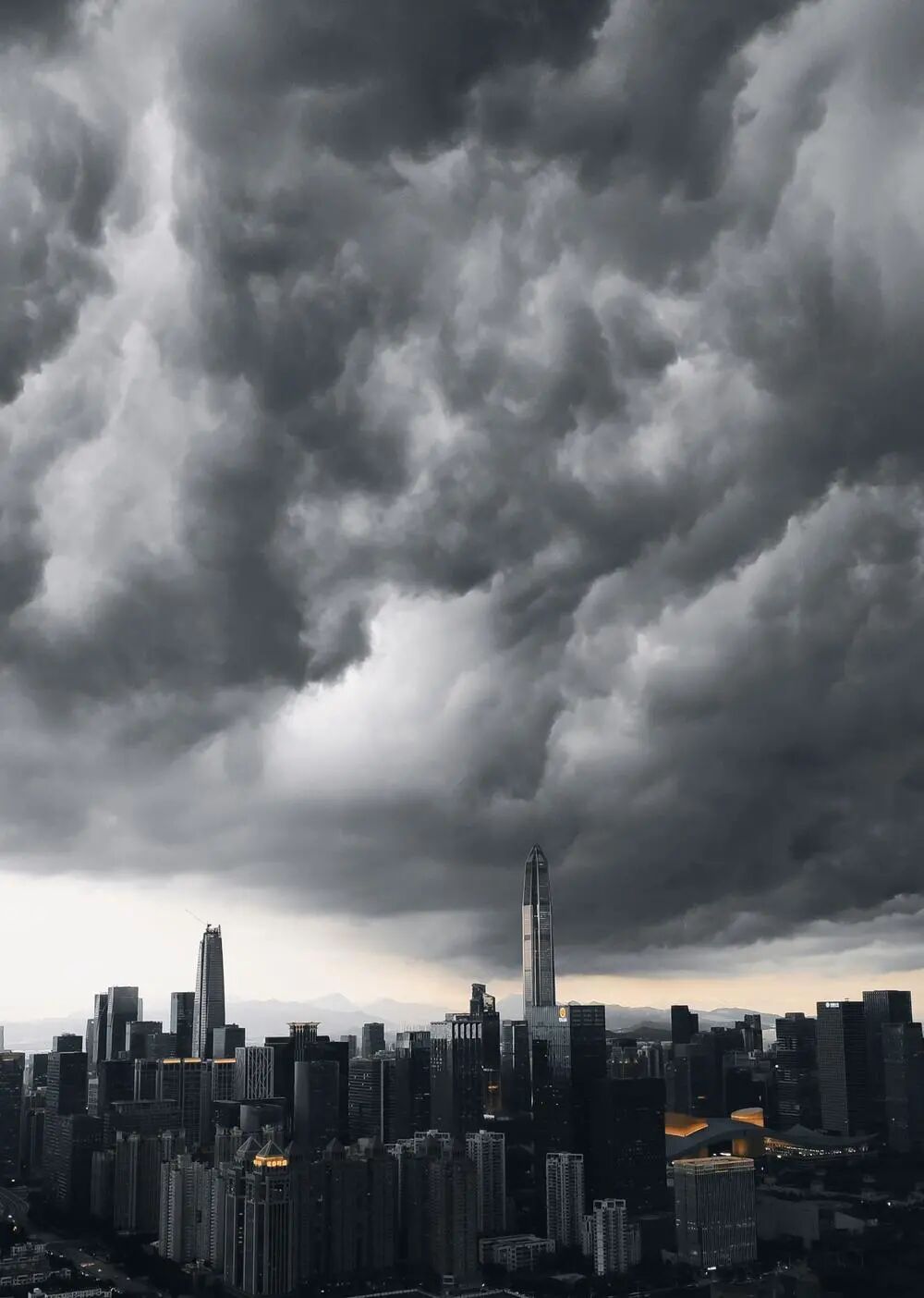 天气突变,赶紧跑窗边拍下这一张。想表现天上的云,所以用了竖构图。原相片下方有些乱,剪裁掉了。后期加个黑金滤镜。手机拍摄